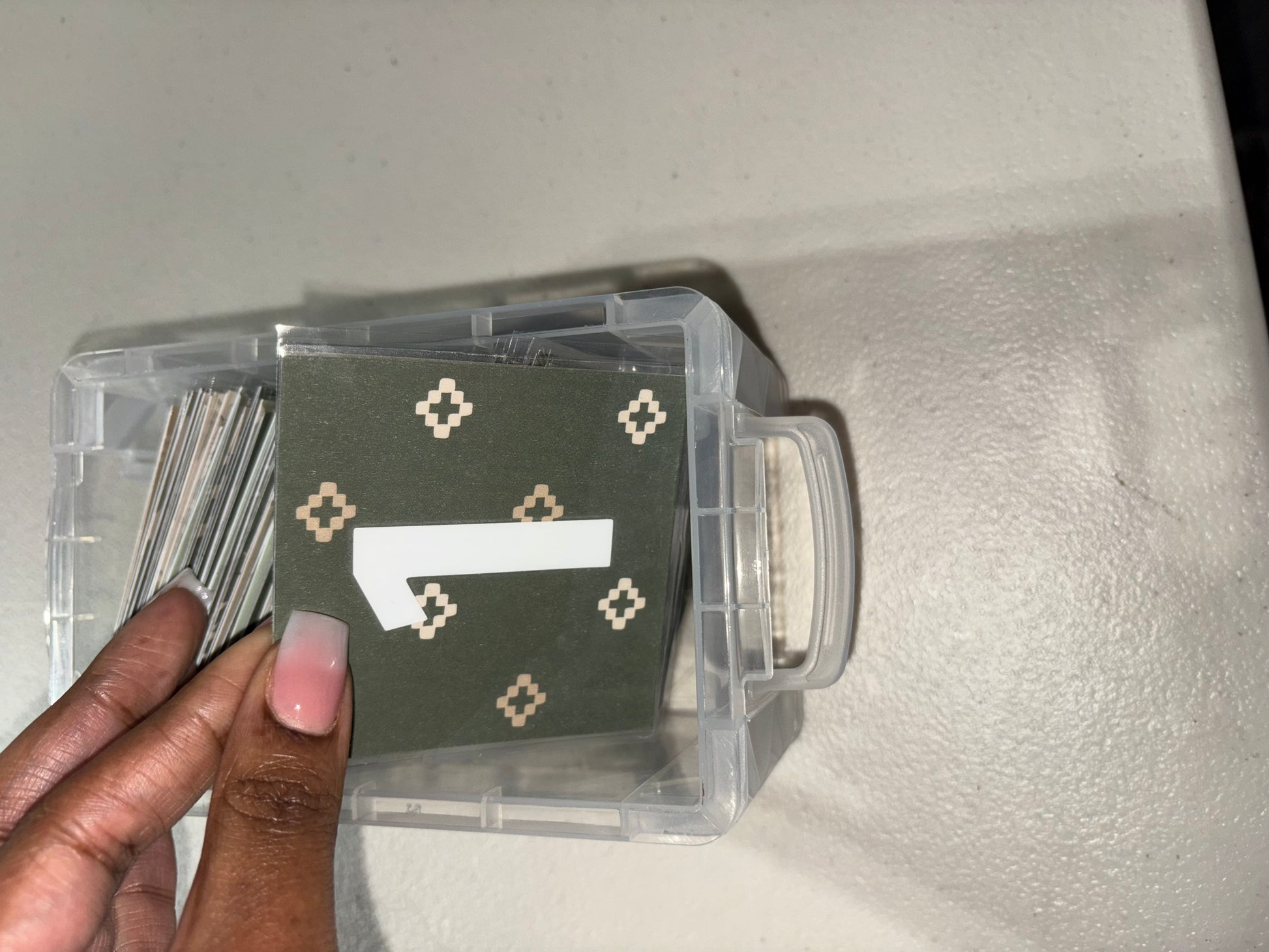 The Green Box consist of 100 hand crafted envelopes. Fill each numbered envelope with the amount of cash and save over $5000. Reach your goal, deposit into a high yield savings account and start over.